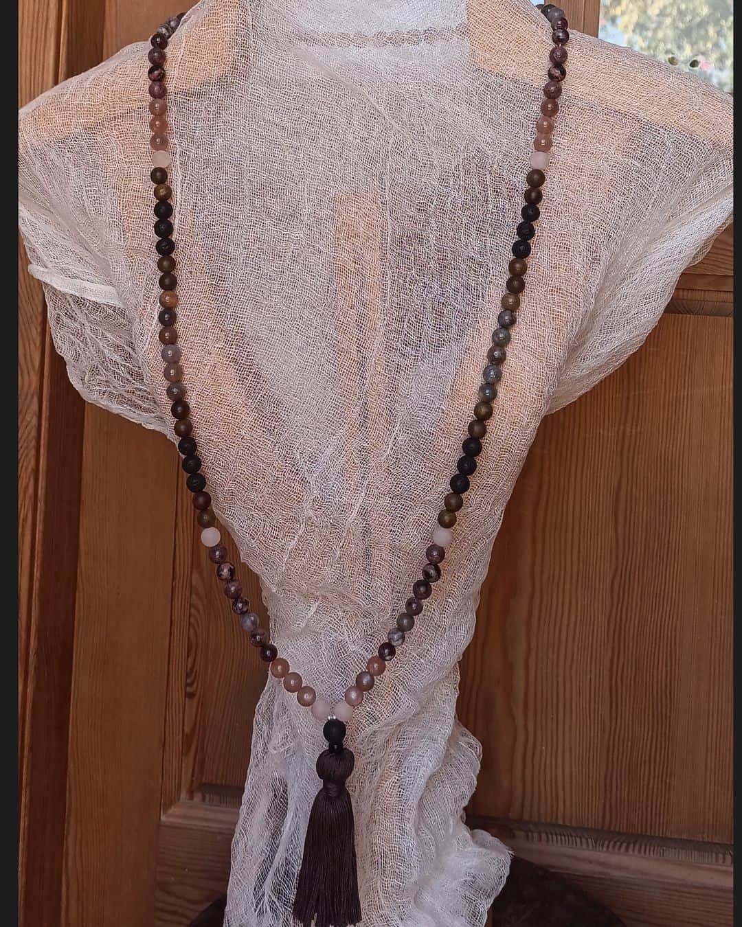 Chaque Mala « Abrazo de Curazón » est unique, créé avec respect et composé de matériaux naturels, qui peuvent donc présenter de légères variations de couleur et texture.