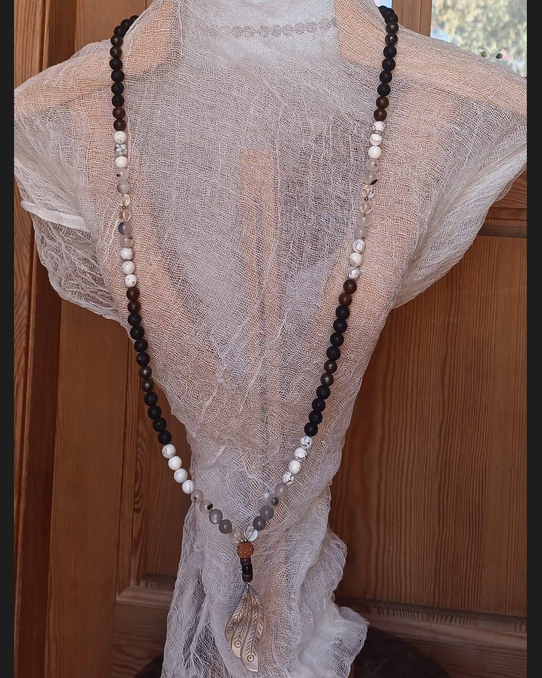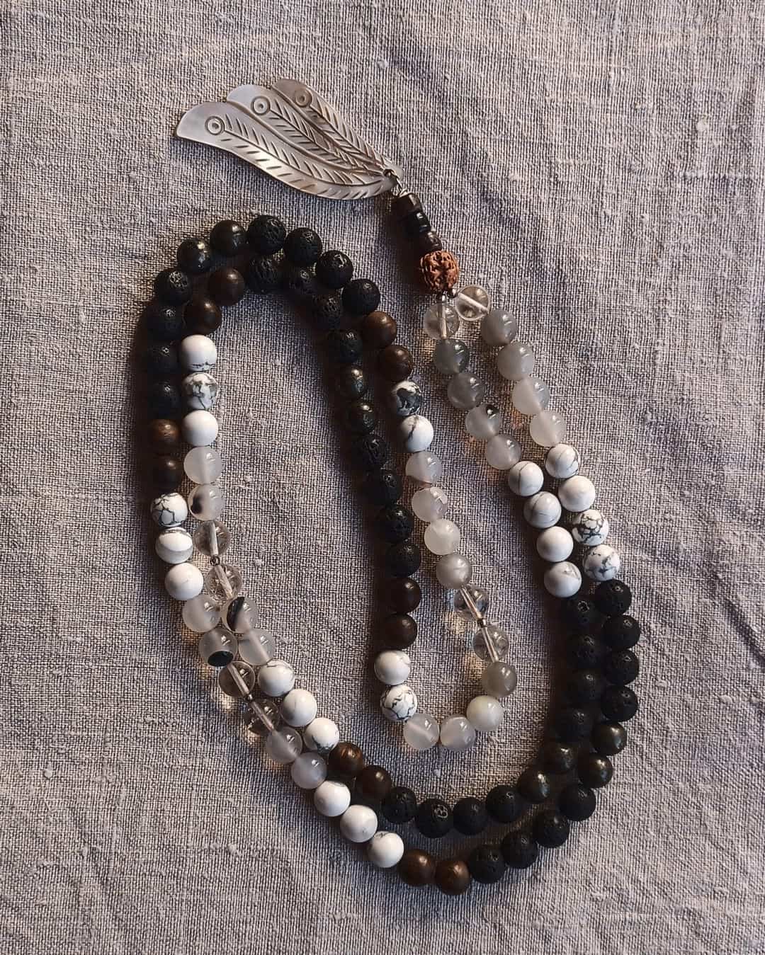 Créé avec le cœur et beaucoup d’amour, ce Mala « Cosmogonia » est une merveille d’équilibre et d’harmonie. Les contrastes saisissants entre noir et blanc reflètent la dualité cosmique, le Yin et le Yang, et vous invite à explorer votre moi profond ainsi que tous les mystères du cosmos.